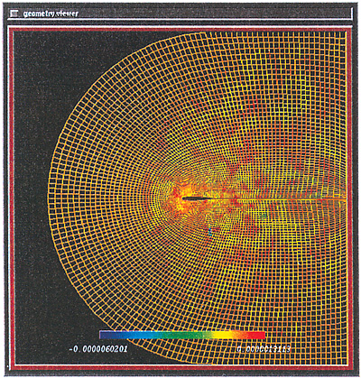 今回開発したデバッガでは、例えば、風洞の中の空気の流れをシミュレーションするプログラムをデバッグする時には、空気の流れの3次元的な図がデバッグデータとして得られます(図10-5)。この結果、膨大な数値を一つずつ検証しなくとも物理的に不自然なところは一目で発見できます。また、別のコンピュータへのプログラムの移植や並列化に当たっては、正しい計算経過からのずれ(差分データ)を可視化表示するだけでデバッグがとても効率的に進みます。可視化デバッガにはこのような機能も含まれています(図10-6)。 |