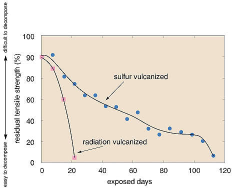 to their users owing to the rubber proteins. Cross-linking of rubber molecules (= vulcanization) can be achieved also by a radiation chemical method. We studied the radiation effect of allergic response and biological adaptability in natural rubber latex as well as changes in the chemical components and molecular weight distribution after irradiation, even from an economical and environmental point of view and thus we proved the advantages of the radiation vulcanization over the conventional one. |
