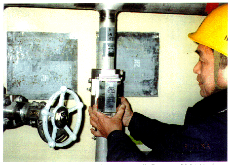 source (192Ir). As 169Yb has a relatively short half-life of 32-days and it is therefore necessary to exchange the sources in a short time, the domestic production has been started by the effective use of the JRR-3M and JMTR reactors in JAERI. 169Yb radiography sources are produced on a scale of six-times per annum and 370 GBq (200 sources per batch) per annum. 169Yb features its low gamma radiation energy and small size (1-mm in diameter and 1-mm in length) so the sources are able to take a clear radiographic picture of the cracks or faults of welding of the plant components. Ytterbium-168 targets (20-% enriched) are used in order to make effective neutron irradiation in these reactors. Radiographic inspection is made by the specially designed irradiators in which 169Yb sources are contained as shown in Fig. 3-11. This work is made at the small space parallel with another one, for this device is able to attenuate 1/100 against the gamma ray radiation of the sources by 5-cm thick lead shielding. In the future the application of 169Yb source will be expected to be expanded furthermore for the non-destructive testing of tiny piping and structural thin steel plates of the large scale systems and chemical plants. |
